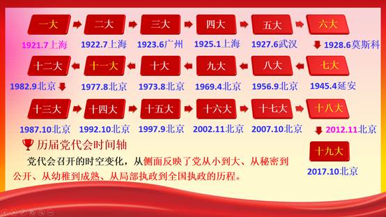 课上,王建伟老师分别从党代会作用及其意义、召开办法及主要职权以及历届党代会详细内容等方面介绍了从“中国共产党第一次全国代表大会”到“中国共产党第十九次全国代表大会”的情况。