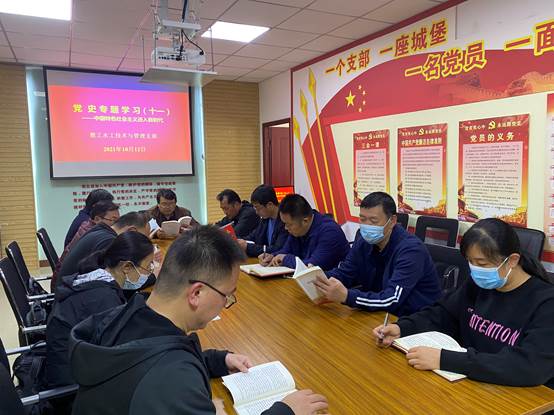 10月12日下午,水利工程学院党总支教工水工技术与管理支部在党员活动室(SY5306)开展了第十一次中国共产党党史学习,学习活动由支部书记王建伟同志主持。