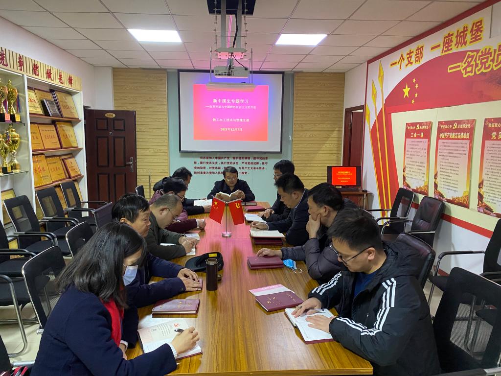 12月7日下午,水利工程学院党总支教工水工技术与管理支部在会议室SY5306开展了第三次中华人民共和国简史专题学习,学习活动由支部书记王建伟同志主持。