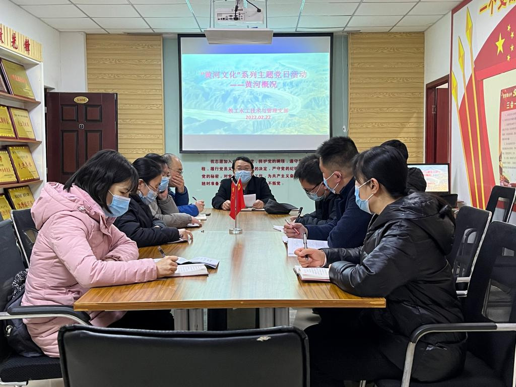 弘扬黄河精神,坚守初心使命。222日下午,水利工程学院党总支教工水工技术与管理支部全体党员在会议室SY5310召开了“黄河文化”系列之“黄河概况”主题党日活动,由支部书记王建伟同志主持,支部全体党员参加了本次学习活动。