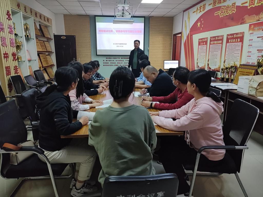 党的十八大以来,以习近平同志为核心的党中央高度重视学习型社会建设。10月24日,水利工程学院教工水工技术与管理党支部在实训楼5306开展了题为“积极参与学习型社会建设”的支部书记讲党课活动,本次活动由支部副书记吴伟同志主持,支部全体党员参加了本次活动。