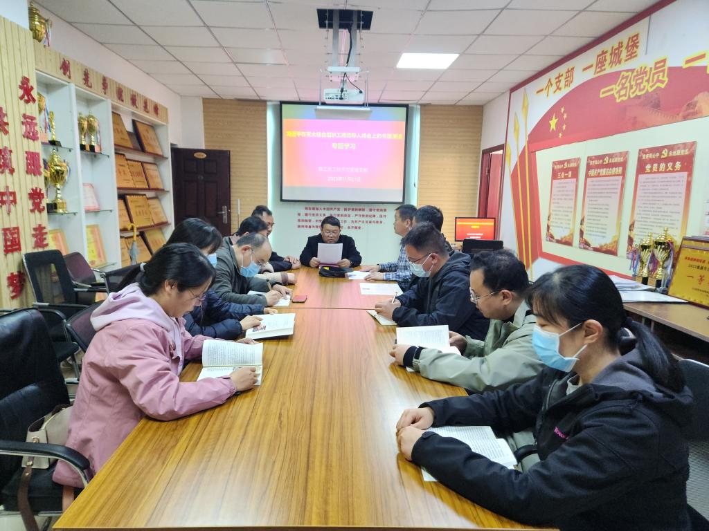 11月21日下午,教工水工技术与管理党支部在实训楼5306组织全体党员专题学习《习近平在亚太经合组织工商领导人峰会上的书面演讲》。当地时间11月16日上午,国家主席习近平向在旧金山举行的亚太经合组织工商领导人峰会发表了题为《同心协力 共迎挑战 谱写亚太合作新篇章》的书面演讲,呼吁亚太工商界弘扬“敢为天下先”的创新精神,为构建开放型亚太经济、助力世界经济发展作出更大贡献。