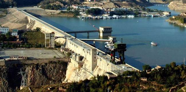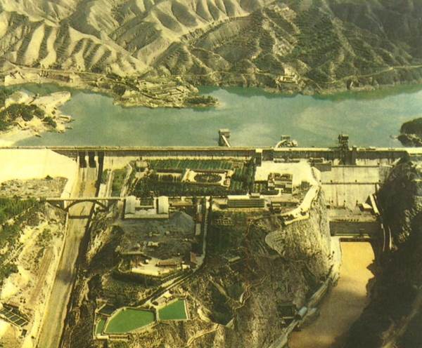 刘家峡水电站是中国首座百万千瓦级水电站,位于甘肃省永靖县境内的黄河干流。1958年9月开工兴建,1961年停工,1964年复工,1975年2月4日,我国自行设计施工的刘家峡水电站在西北高原丛山峻岭之间,古城兰州滔滔黄河之上,一座大坝拔地而起。刘家峡水电站可蓄水57亿m3,年发电量57亿度,比解放初期全国一年的发电量还多。同时,它还是一个兼有防洪、灌溉、防凌、养殖等综合利用价值的大型水利枢纽。