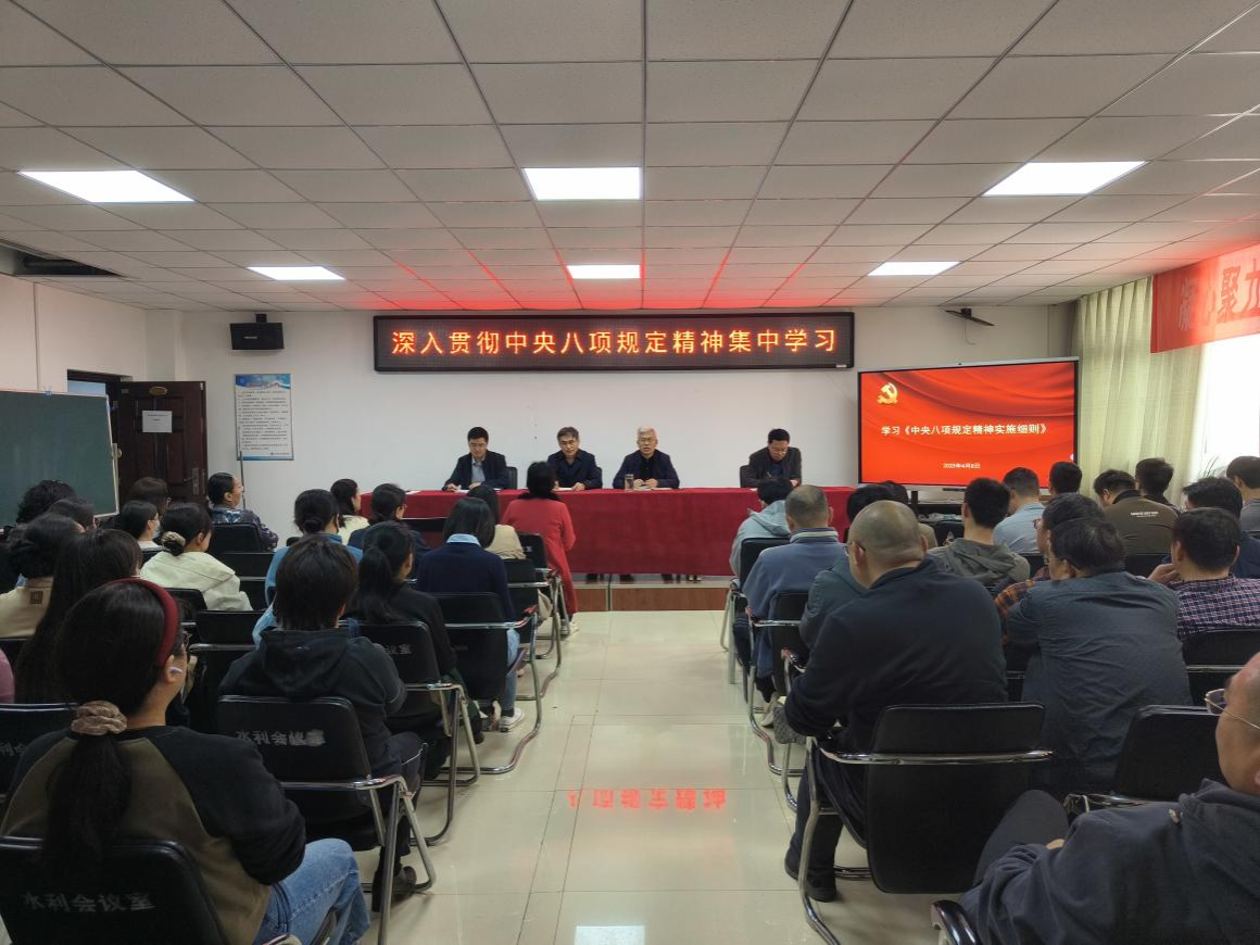 4月8日水利工程学院在SX5310会议室开展深入贯彻中央八项规定精神集中学习会议由学院党总支书记王建设主持,全体教职工参加。