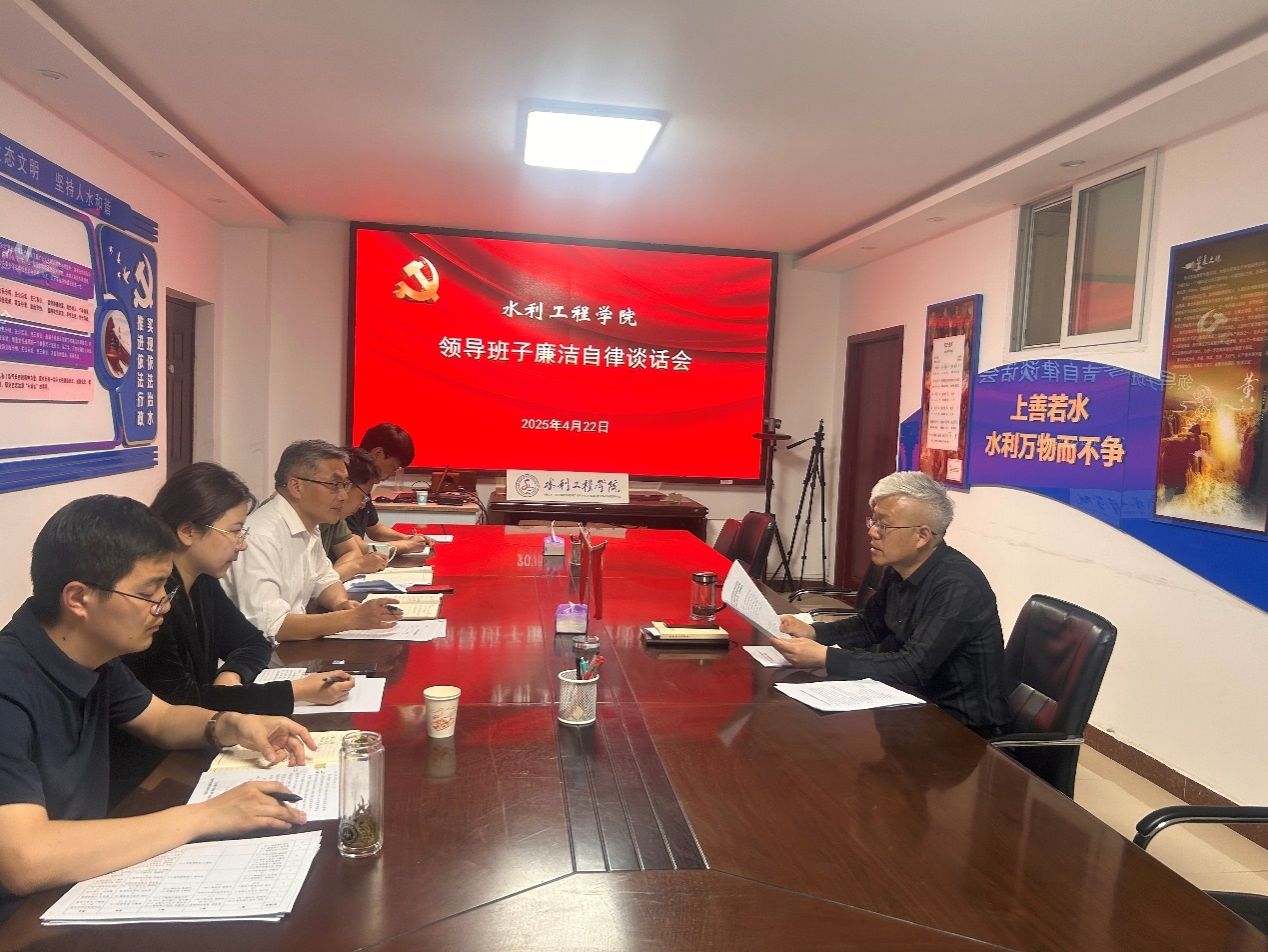 4月22日,水利工程学院在SX5312召开领导班子廉洁自律集体谈话会,会议由总支书记王建设主持,在校院领导参加会议,两办主任列席会议。