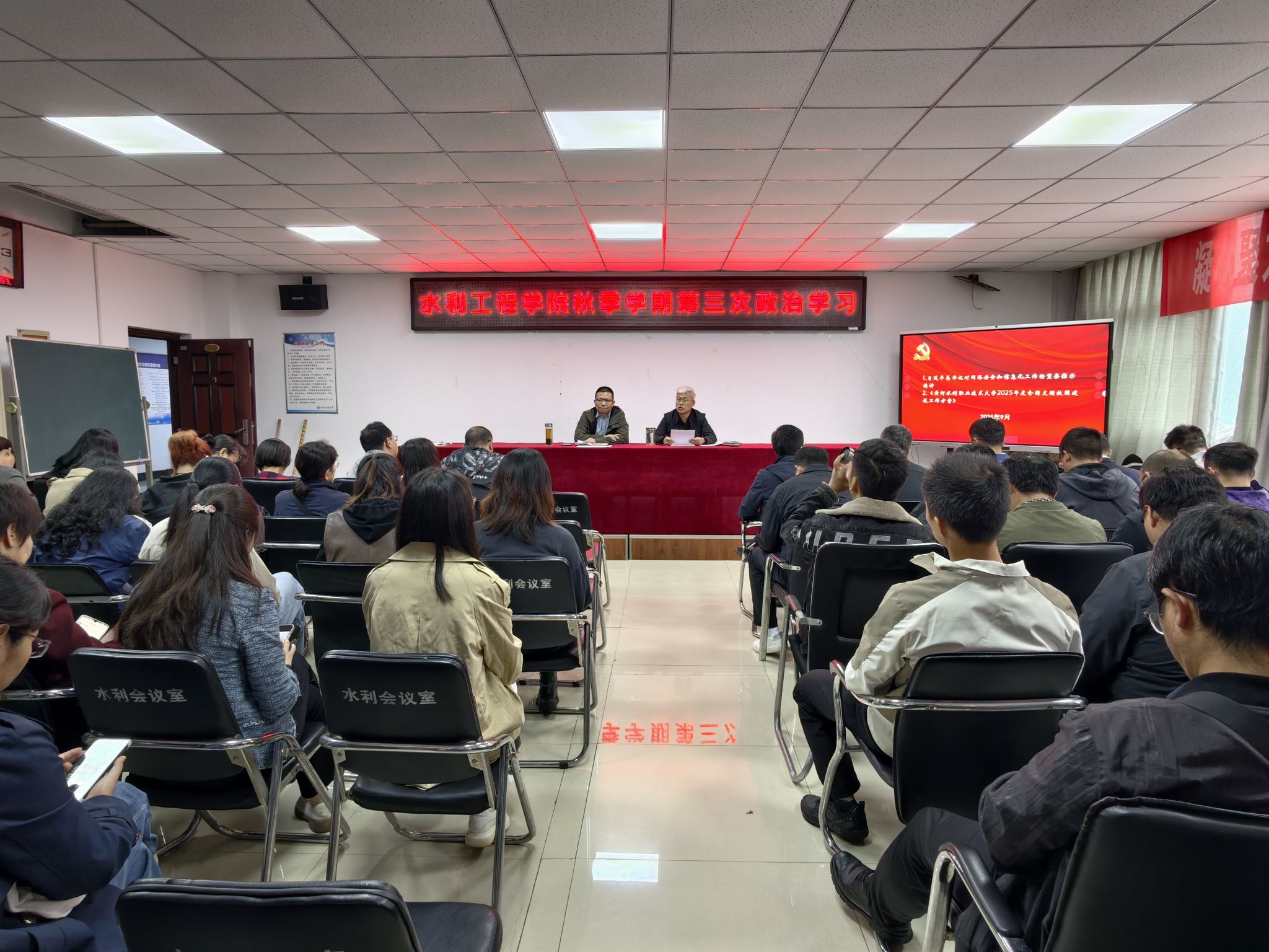 9月23日,水利工程学院在SX5310会议室召开水利工程学院秋期学期第三次政治学习,党总支书记王建设、院领导及全体教师参加会议,会议由院长雷恒主持。