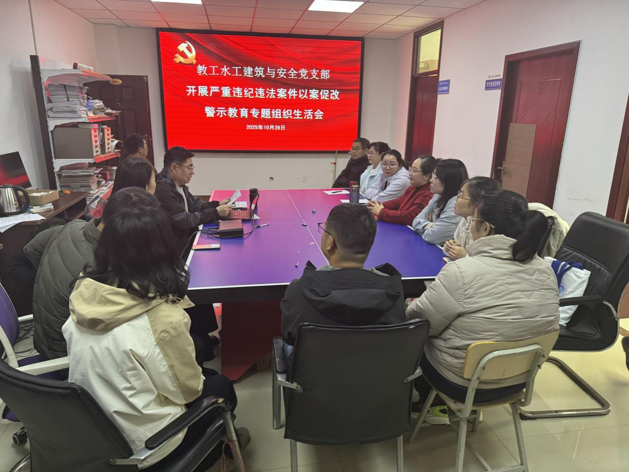 2025年10月28日,教工水工建筑与安全党支部于sy5304会议室召开严重违纪违法案件以案促改警示教育专题组织生活会,旨在强化党员纪律意识,营造风清气正的党内生态。