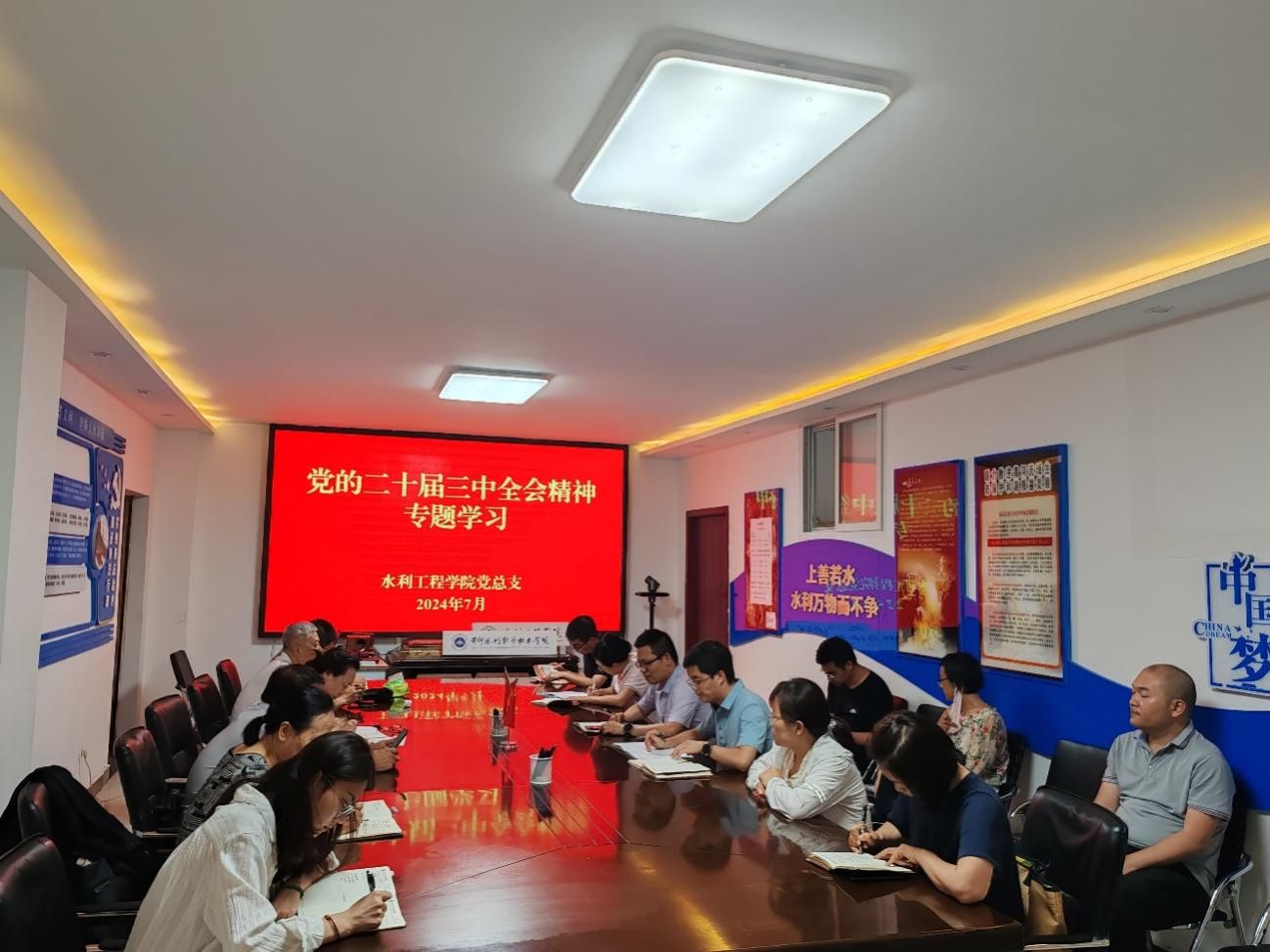7月23日下午,我院召开专题学习会,深入学习贯彻党的二十届三中全会精神,传达学校党委理论学习中心组(扩大)专题学习会要求,并结合学院工作实际进行研究部署。在汴院领导、各支部书记、三办负责人、教研室主任、专业带头人和教师代表参加会议。院长雷恒主持会议。
