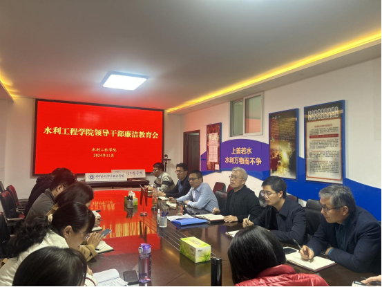 为深入贯彻落实中央八项规定精神,巩固和深化党纪学习教育成效,进一步营造风清气正的育人环境,11月12日下午,水利工程学院召开领导干部廉政教育会,会议由党总支书记王建设主持,领导班子成员、三办负责人、教研室主任参会。