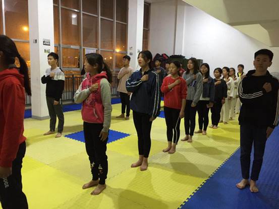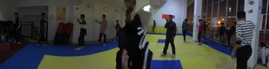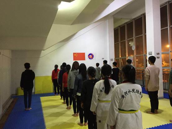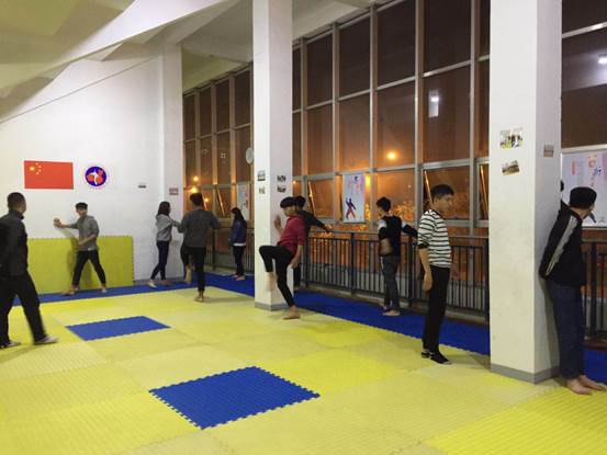校跆拳道协会举办“跆拳道开放式训练”活动,报道如下:为了丰富校园文化生活,并让更多的同学们对跆拳道这项体育运动有一定的了解,校跆拳道协会与11月2 日(周四晚上)在跆拳道训练房举办开放式训练活动,跆拳道协会精心组织,与辅导老师多次沟通,确保活动取得成效。活动当天,刘虎老师辅导同学们跆拳道训练课,首先带领全体成员面对国旗,右手抚胸,宣誓。热身后,刘虎老师给同学们讲解了练习“前踢”和“后踢”腿法的要领,使同学们掌握了要领,增加了信心,更加热爱这项运动。