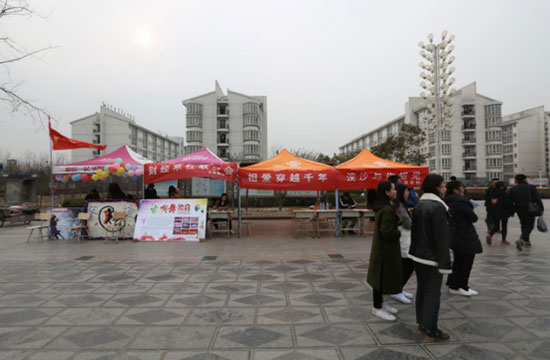 2017年3月12日,为了丰富大学生业余生活,学校让各社团开展周末文化广场。浣沙国学社也积极参加。活动安排在周日下午,各位社员认真准备,等待活动开始。