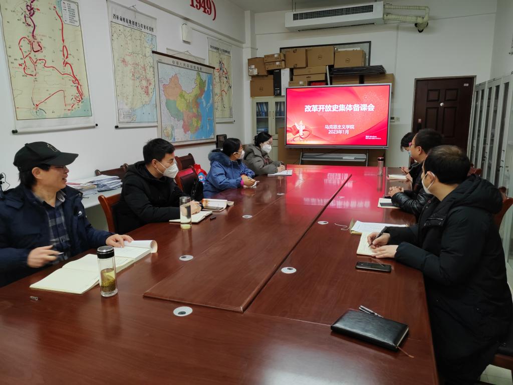 1月15日,学院召开马克思主义理论选修课《改革开放史》首次集体备课会,院长焦红强、课程牵头人孟卫兵和教学团队全体教师对课程建设和教案设计等进行了集中研讨,为新学期顺利开课打好了基础。