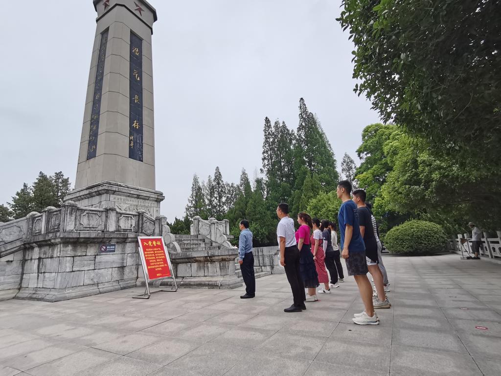重温入党誓词,坚定理想信念。在淮海战役碾庄圩战役纪念碑前,马克思主义学院教师党员带领学生党员一起重温入党誓词,锤炼意志品格,坚定理想信念,进一步增强了不忘初心、牢记使命、永远奋斗的决心。