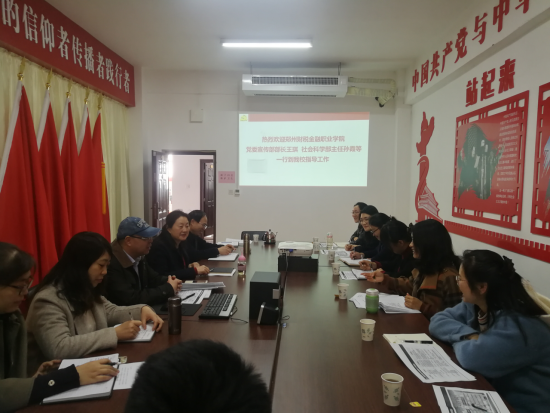 3月6日下午,郑州财税金融职业学院宣传部长王琪、社会科学部主任孙霞等一行10人来我院就课程建设、实践教学、科研工作等方面进行考察交流。我院院长彭新立、副院长白霞、各教研室主任及教师代表热情接待了来访客人。