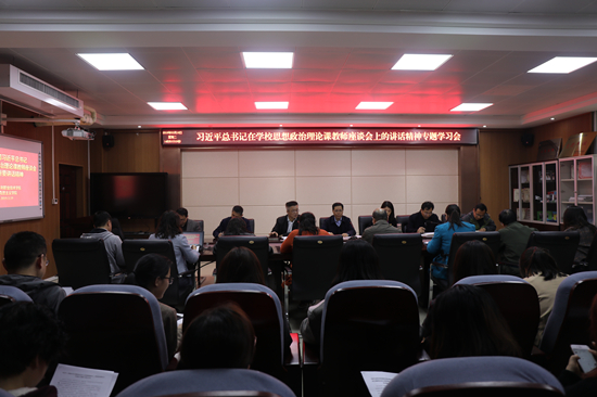 党委委员、党委宣传部部长于兆国领学了习近平总书记在学校思想政治理论课教师座谈会上的重要讲话精神。副校长焦爱萍,教师工作部部长周志琦,马克思主义学院院长彭新立,思政课教师邵卫、孟卫兵、赵俊亚、乔新杰等先后发言。他们结合实际围绕教育教学改革、师资队伍建设、思政课建设、思政课教学、当好学生引路人等方面畅谈学习心得,提出意见和建议。