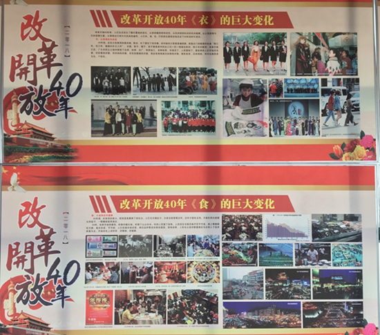 改革开放40年来,我们伟大祖国的每一座城市、每一处乡村、每一个家庭都发生了翻天覆地的变化。在庆祝改革开放40周年之际,马克思主义学院设计制作了以“改革开放40年的巨大变化”为主题的系列宣传展板,近日在马克思主义学院布展完毕并开展。展板围绕“经济、衣、食、住、行、军事、科技、教育”等8个方面的内容,多角度地向师生们展现了改革开放40年来中国各领域发生的沧桑巨变,吸引了众多师生驻足浏览。