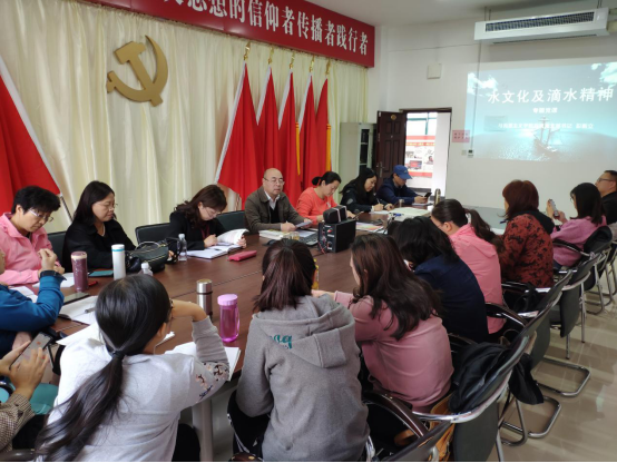 2019年10月15日,响应习近平总书记在黄河流域生态保护和高质量发展座谈会上的讲话精神,并结合我校建校特色,马克思主义学院党支部书记彭新立在二楼会议室开展了以“水文化及滴水精神”为主题的党课活动,马克思主义学院全体党员教师参加了本次党课。