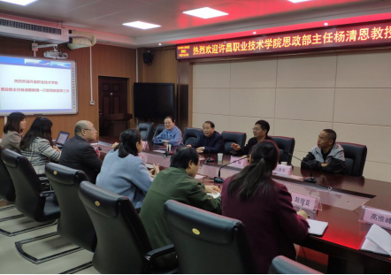 11月8日上午,许昌职业技术学院思政部主任杨清恩、副主任杨腾等一行4人到访我校马克思主义学院,就高职思政课教学工作开展考察交流。我校马克思主义学院院长彭新立、副院长白霞、办公室主任乔新杰及相关教师等在5号办公楼会议室热情接待了来访客人。