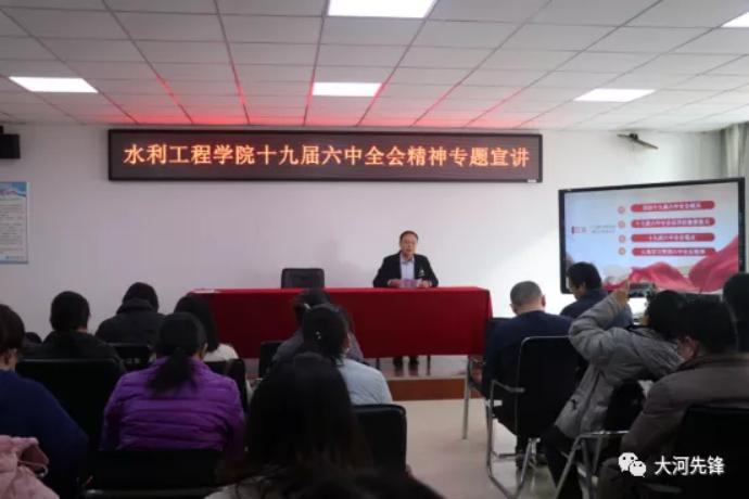 2021年12月21日下午,我支部徐帅老师为水利工程学院学院教师宣讲十九届六中全会精神。