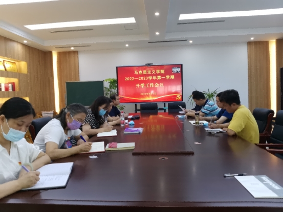 焦红强院长就暑期工作进行了阶段性总结,并全面部署了下半年的各项重点工作,特别是希望学院全体教师要高度重视开学第一课。他说,暑期学院主要完成了六项工作,一是学院全体教师赴大别山顺利开展实践研修;二是由自己作为主要代表,参加全省马院院长培训班和全省大中小学思政课一体化研修班,并传达主要会议精神;三是基本完成了学院思政育人环境提升建设项目工程;四是按时完成全国文明校园创建的阶段性资料准备工作;五是按时申报思政教育专项资金项目,大力推进教师团队建设和校友资源大思政课建设;六是宣布了学院新的人事调整和新进教师补充情况。对下半年的工作,焦红强院长强调,一是要认真完成新设《习近平新时代中国特色社会主义思想概论》课程建设工作,全体教师特别是相关教师要高度重视教材培训、集体备课;二是稳定推进准备全省156所高校标准马院建设达标工作;三是出台一系列关于思政课建设的制度,为评选全省示范性马院作准备;四是肯定过去一年学院教师全省“大比武”取得的成绩,同时鼓励全体教师要更上一层楼,要求今后周周磨课、月月练兵、年年比武,力求来年更创佳绩。
