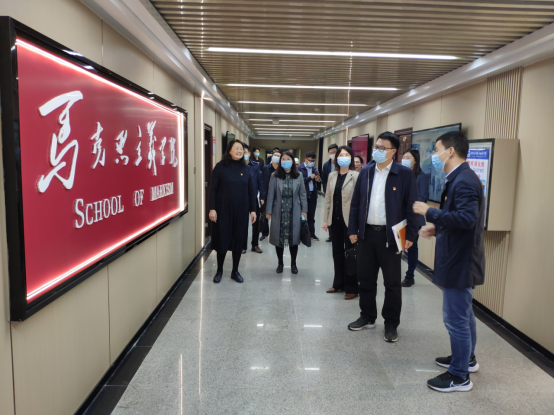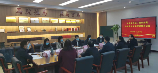 焦爱萍副校长就“新思想”课程建设情况与马院教师进行了交流,与会教师也提出了相关的意见建议。在现场办公会之前,胡校长一行实地查看了马克思主义学院的教学、科研场所,对学院思政课教学运行情况进行调研。(供稿:黄亚鹏)