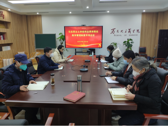 2023年1月6日下午,马克思主义学院召开党政联席会议集体学习了学校教学管理制度系列文件精神并对全院进行了线上传达。