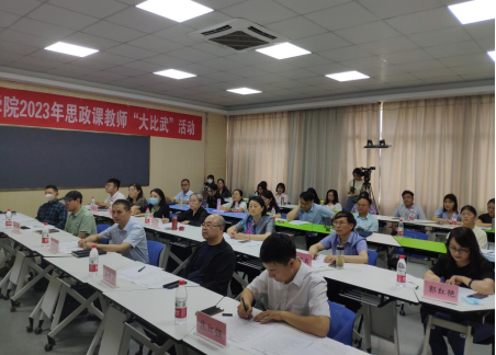 朱焕立作动员讲话。他指出,学校党委长期高度重视思政课教学工作,出台了《关于加强新时代思想政治理论课建设的实施意见》,采取了一系列举措加强马克思主义学院建设、提升思政课教学水平。马克思主义学院在全员“大练兵”基础上组织了这次全校思政课教师的“大比武”活动。对此,他提出三点要求:一是要强化主体责任意识,按照习近平总书记提出的“六要”“八统一”要求,以“大练兵、大比武”为契机,营造全员练兵的思政课教学氛围。二是突出能力锤炼,通过比赛切磋技艺,真正提升教师的教学能力。三是树立评价导向,以“大比武”充分展示我校深化思政课改革创新成果,着力打造我校思政课名师团队。