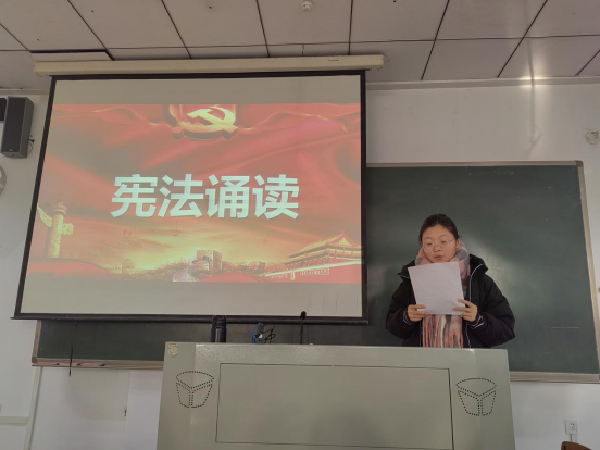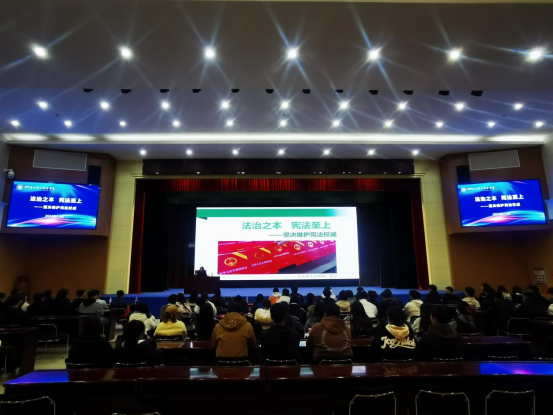 12月4日,邵卫老师给学生们做了《法治之本 宪法至上----坚决维护宪法权威》的法治讲座,同学们听得聚精会神,学习宪法的热情高涨。12月1日-7日,思想道德与法治教研室依托《思想道德与法治》课堂教学开展了一系列日常宪法宣传活动。在课堂上,老师们以《大力弘扬宪法精神,建设社会主义法治文化》、《宪法与我们的生活》为题为同学们讲解了宪法相关知识,带领同学们观看了宪法相关视频,并引导和组织同学们集体诵读《宪法晨读内容》,学唱歌曲《宪法伴我们成长》。