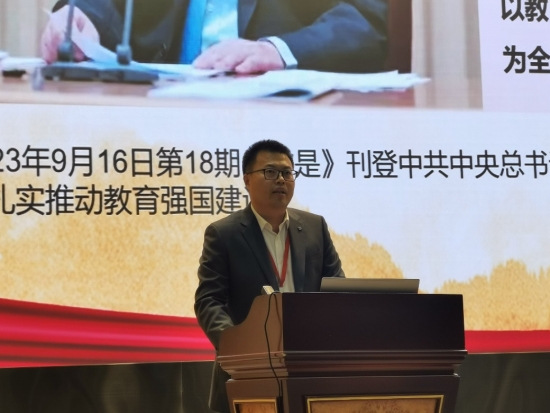 在院校交流环节,胡昊以《党建引领 学思悟行 推动“新思想”铸魂育人见实效》为题作报告。他表示,学校坚持以习近平新时代中国特色社会主义思想培根铸魂,通过领导干部带头宣讲“新思想”、全体党员精研细学“新思想”、思政课教师讲透讲活“新思想”、广大学生践行激活“新思想”,四维联动,努力讲好《习近平新时代中国特色社会主义思想概论》(以下简称《概论》)课,使其取得较好实效。胡昊强调,讲好《概论》课,事关全体党员巩固思想阵地、提升党性修养的百年大计,事关高校落实立德树人根本任务的职责使命。我校将立足高职、着眼职本,主动开展《概论》课教学探索,与兄弟院校一道共同努力,把“新思想”教育教学做出成效、形成范式。
