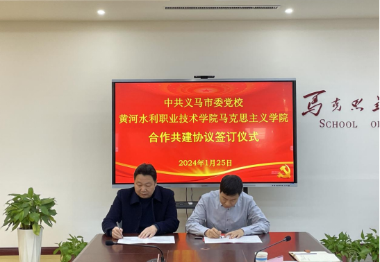 1月25日上午,中共义马市委党校常务副校长方金龙一行3人到我院进行考察交流,院党总支书记杜丙辰、院长焦红强、副院长白霞、高维峰与会座谈,双方举行两校结对共建签约仪式。