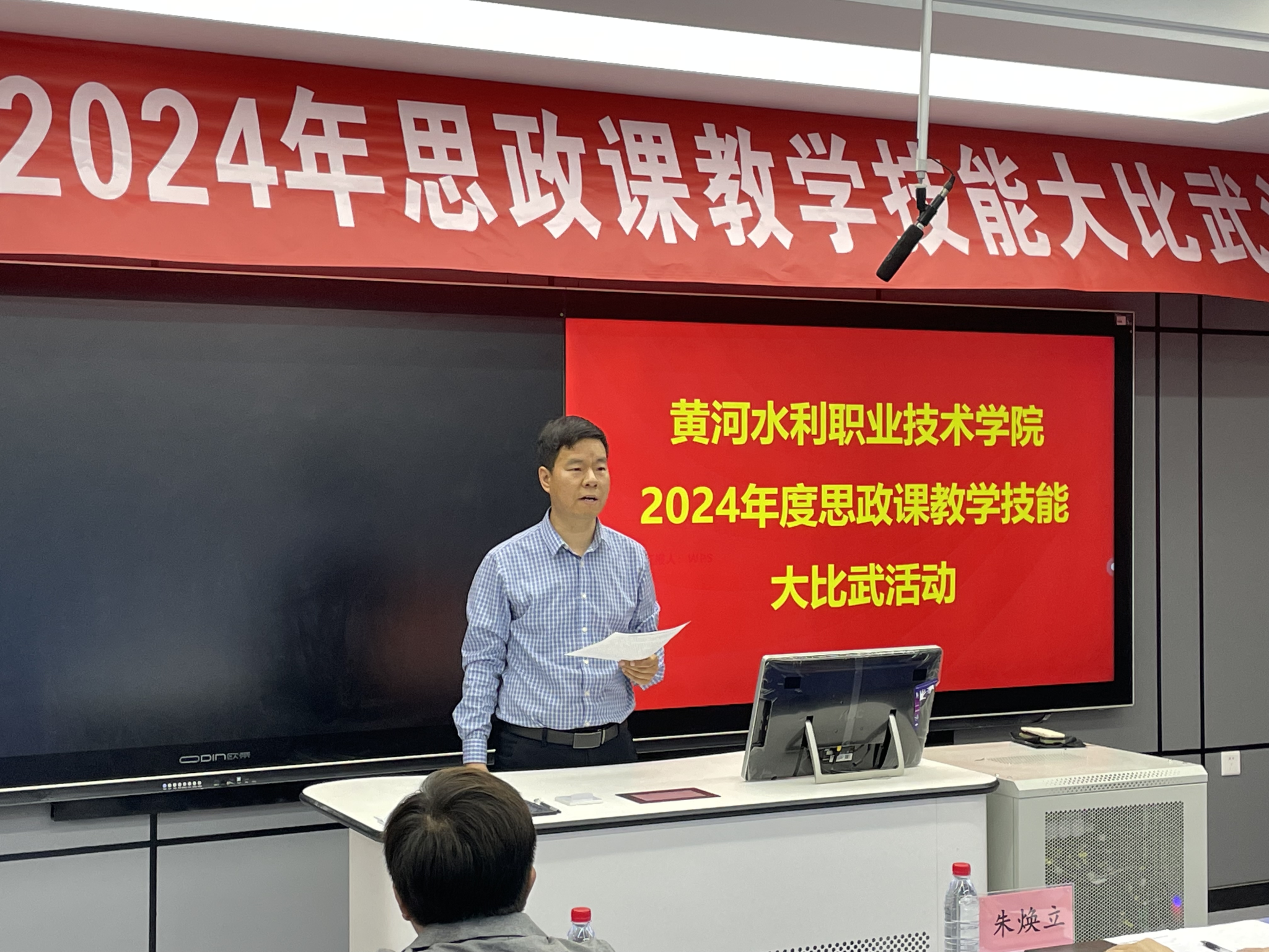 为深入贯彻落实习近平总书记3.18重要讲话精神,切实提高思政课教师教学能力和水平,4月27日下午,学校在2203教室组织开展了2024年思政课教学技能“大比武”活动。马克思主义学院新思想教研室、德法教研室、概论教研室、形策教研室在前期“大练兵”的基础上,推荐20位思政课教师进行了教学能力展示。副校长朱焕立出席活动致辞,党委宣传部、教务处、教育教学督导室、马克思主义学院等部门负责同志与会指导,全校思政课专兼职教师到场观摩。