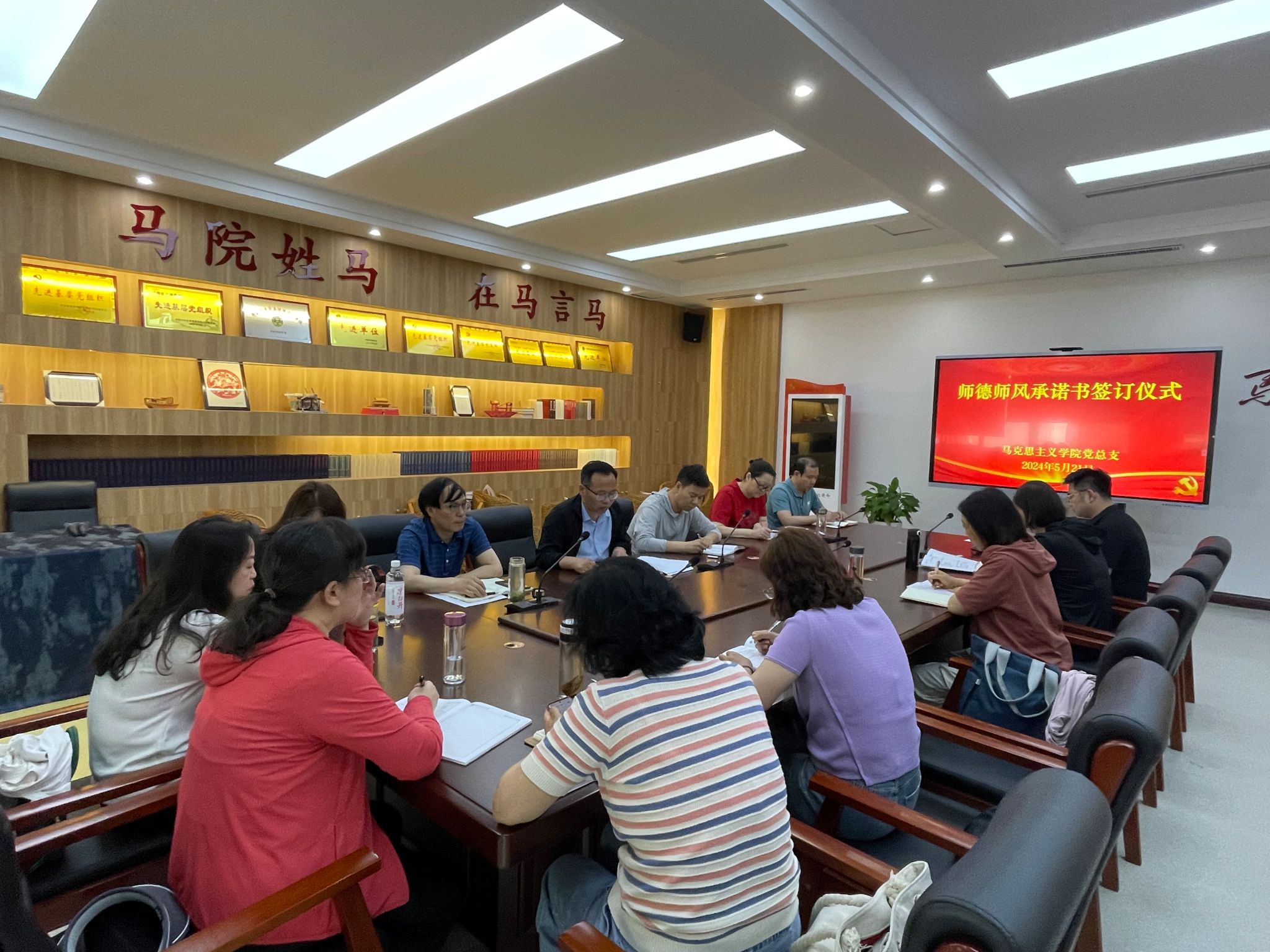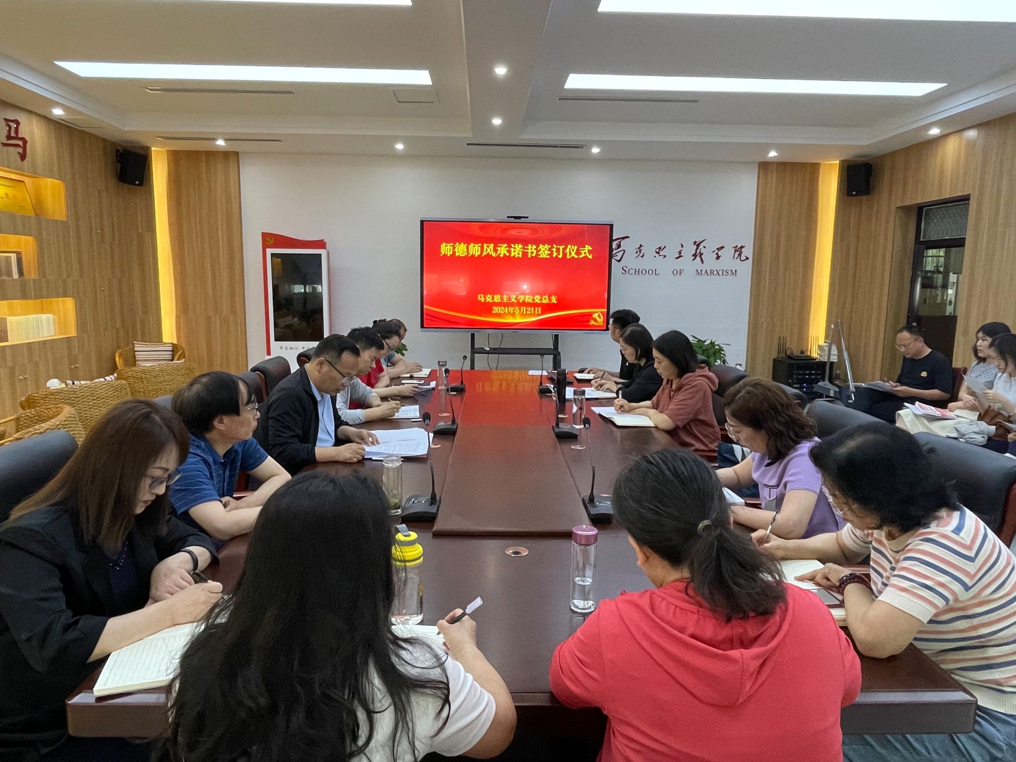 为全面加强教师职业道德修养和教育行为规范,树立良好的师德师风育人环境,5月21日下午,马克思主义学院在学院会议室举行《师德师风承诺书》签订仪式。会议由马克思主义学院党总支书记杜丙辰主持,全体教师参加。