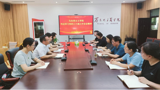 7月21日上午,马克思主义学院在学院党建活动室召开会议,传达学习党的二十届三中全会精神,全院科级以上干部和各教研室主任参加会议。