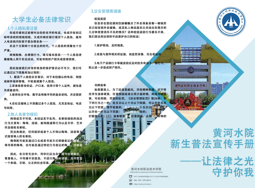 在活动现场,我校教师团队向新生们分发了一份内容丰富、设计精良的法律宣传手册。该手册不仅包含了隐私权保护、治安管理处罚、网络暴力和网络诈骗等与大学生活息息相关的法律常识,还特别介绍了于2024年1月1日起正式实施的《中华人民共和国爱国主义教育法》。在帮助新生快速掌握法律知识的同时,进一步强化爱国主义情怀。