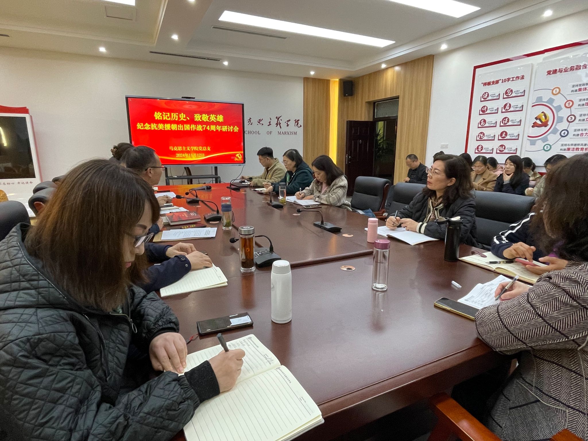为深入推进党史学习教育,传承和弘扬伟大的抗美援朝精神,增强党员的凝聚力和向心力,11月12日下午,马克思主义学院党总支组织开展铭记历史、致敬英雄——纪念抗美援朝出国作战74周年研讨会。会议由马克思主义学院党总支书记杜丙辰主持,全院党员教师参加会议。