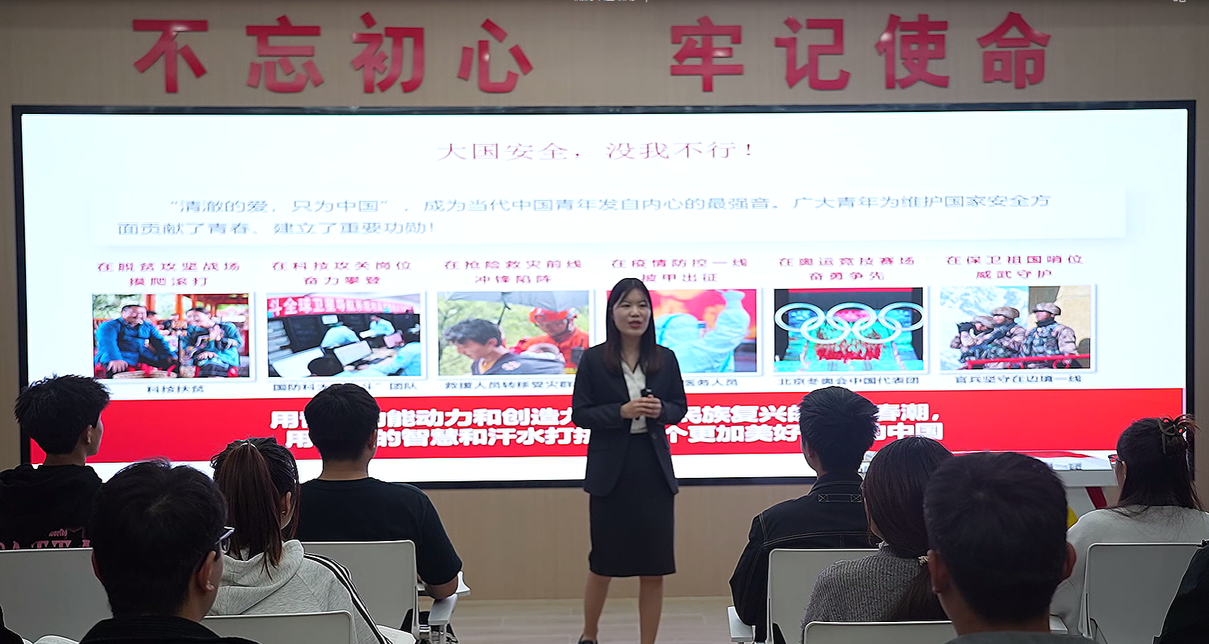 2024年4月15日,马克思主义学院宣讲团成员汤迎迎老师在马克思主义学院实训室多媒体教室分别以“大国安全 没我不行”为学生讲解了什么是国家安全、为什么要重视国家安全、如何维护国家安全等,并强调了提高自我安全防范意识的重要性。