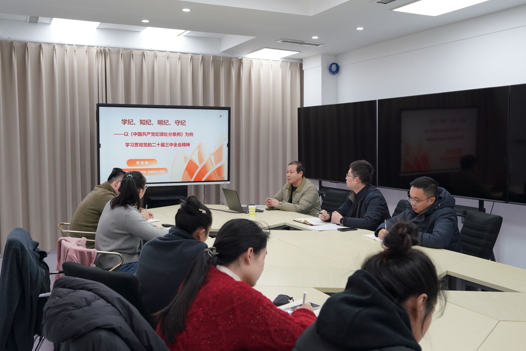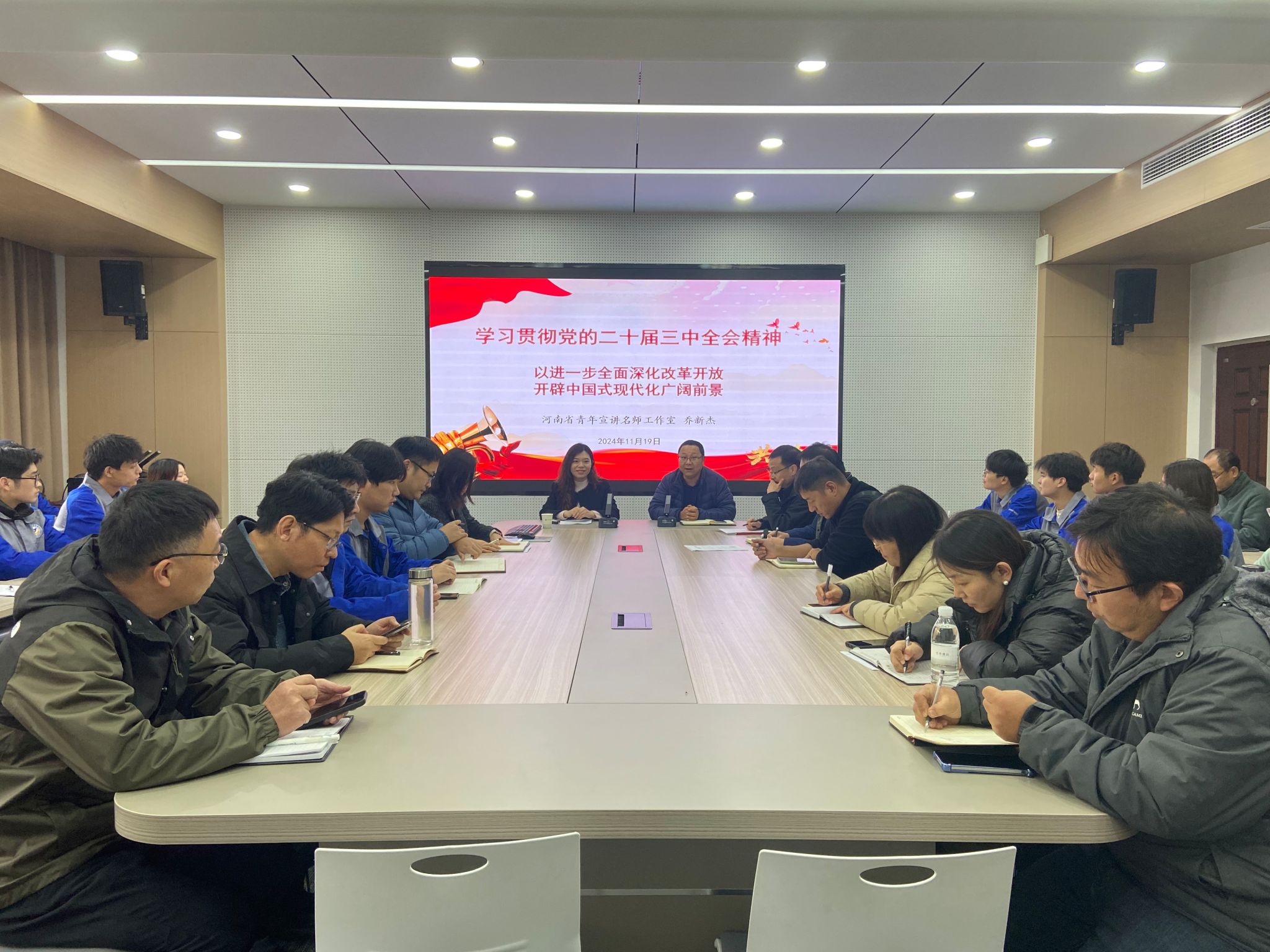 11月19日下午,马克思主义学院举行了学习贯彻党的二十届三中全会精神宣讲报告会,由黄河水利职业技术学院“大河春潮”理论宣讲团成员、马克思主义学院党总支书记杜丙辰作专题辅导报告,全体思政课教师参加报告会。11月19日下午,校党政办公室副主任、学校党的二十届三中全会精神宣讲团成员乔新杰应邀为机械工程学院进行宣讲。11月19日下午,“大河春潮”理论宣讲团成员孟卫兵老师应邀为电气工程学院全体教师作学习贯彻二十届三中全会精神辅导报告。11月26日下午,“大河春潮”理论宣讲团成员赵俊亚老师应邀为金融与会计学院全体教师作学习贯彻二十届三中全会精神辅导报告。12月3日下午,“大河春潮”理论宣讲团成员赵俊亚老师应邀为旅游学院全体教师作学习贯彻二十届三中全会精神辅导报告。12月10日下午,“大河春潮”理论宣讲团成员、马克思主义学院副院长高维峰博士应邀为信息化管理办公室教师进行题为《学纪、知纪、明纪、守纪以<中国共产党纪律处分条例>为例学习贯彻党的二十届三中全会精神》的主题宣讲。