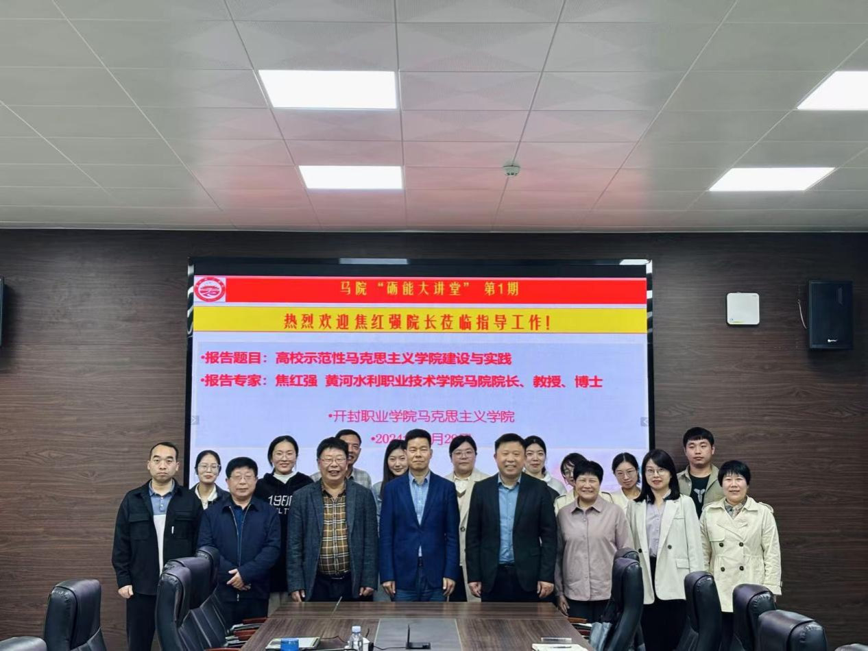 2024年10月29日,院长焦红强教授应邀为开封职业学院作题为“高校示范性马克思主义学院建设与实践”的专题报告。本次报告会由开封职业学院马院、黄河水利职业技术学院马院、河南省高校思政课名师赵增彦工作室、河南省高校思政课名师常素芳工作室联合举办,开封职业学院党委副书记、副校长马纪岗教授出席会议并讲话。