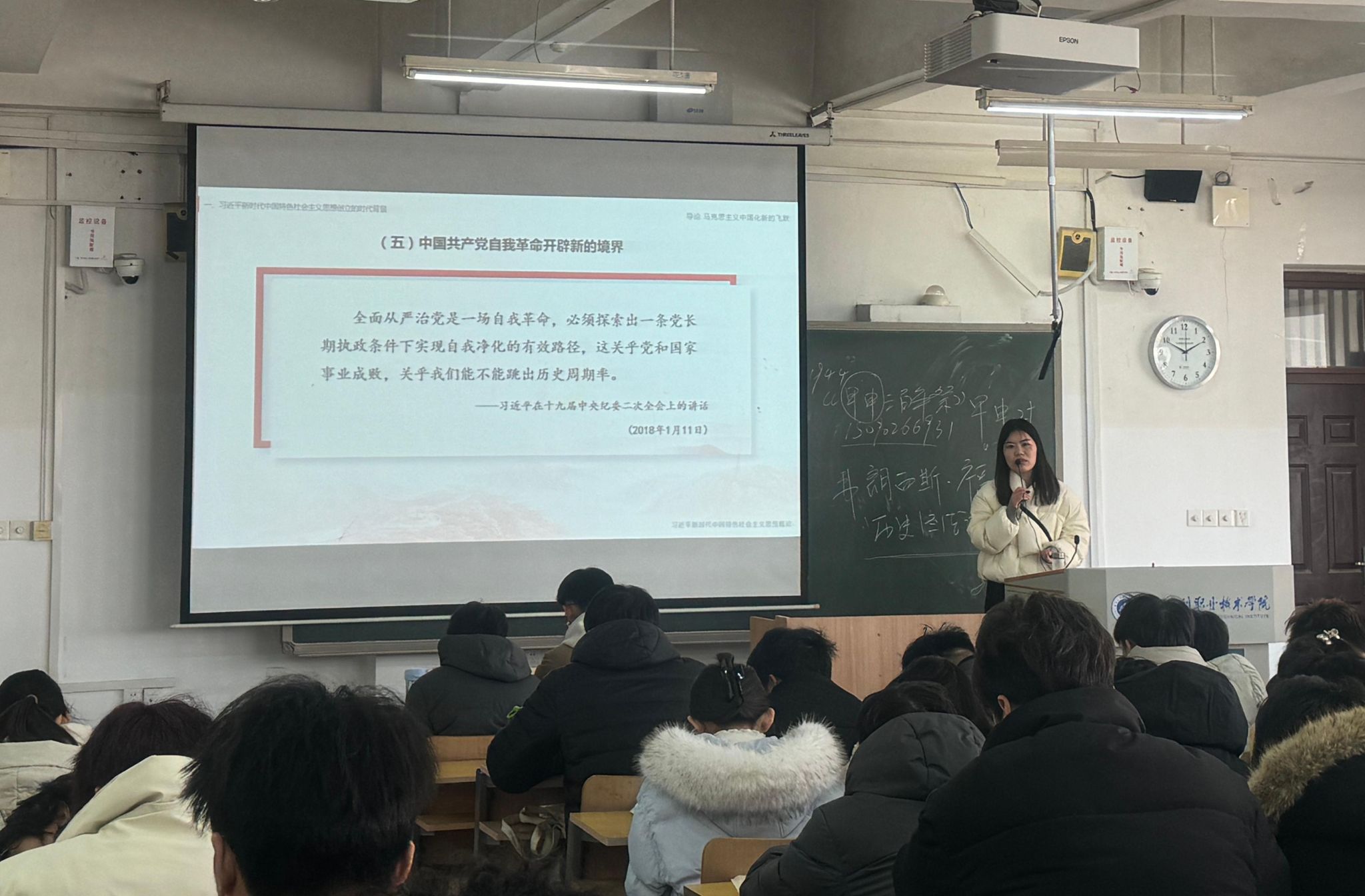 2月17日-19日,校党委书记周保平,校党委副书记、工会主席杨士恒,副校长周志琦等深入《习近平新时代中国特色社会主义思想概论》课堂,现场听课并指导思政课教学工作。马克思主义学院党总支书记杜丙辰、院长焦红强、副院长白霞、副院长高维峰深入课堂,分别了解各门思政课上课情况。