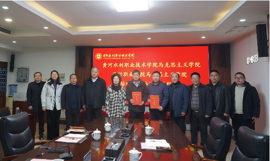 为深入贯彻习近平总书记关于思政课建设的重要指示精神,全面落实河南省教育工委、省教育厅着力推进全省思政课内涵建设的重要部署,2月24日,我校与开封职业学院马克思主义学院结对共建签约仪式在行政楼二楼会议室举行。开封职业学院党委书记储建新,党委副书记、副校长、马克思主义学院院长马纪岗等一行5人,我校党委书记周保平,校党委副书记、工会主席杨士恒,河南省高校青年宣讲名师乔新杰,马克思主义学院领导班子成员出席会议。会议由杨士恒主持。