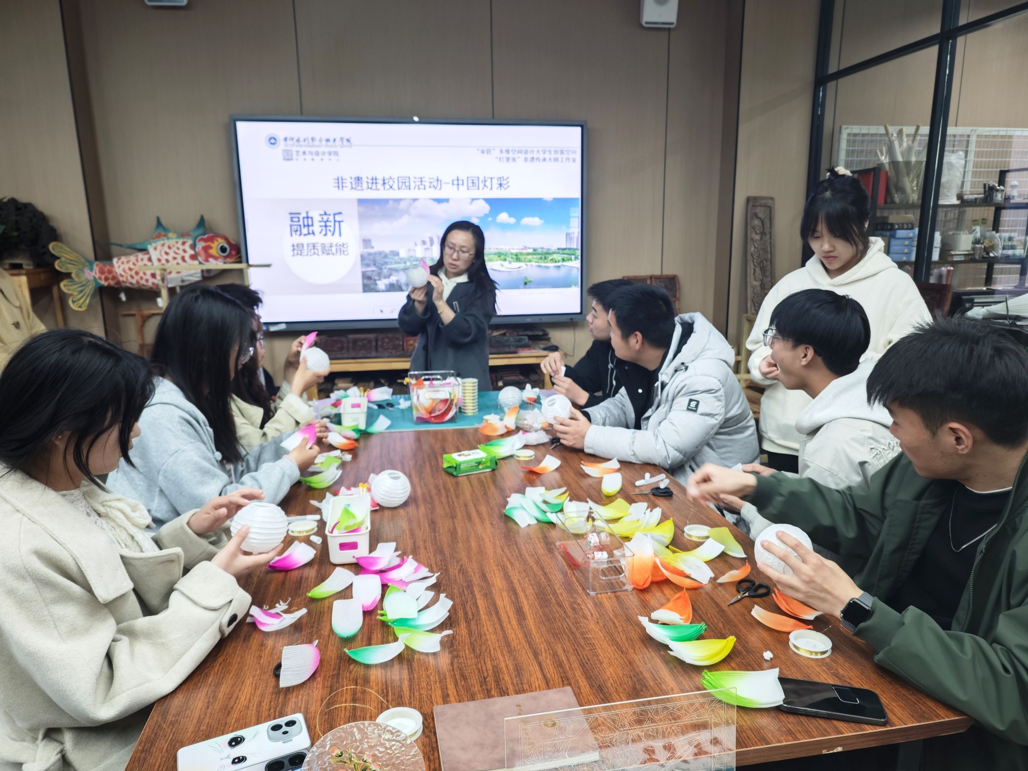 学生制作灯笼展示