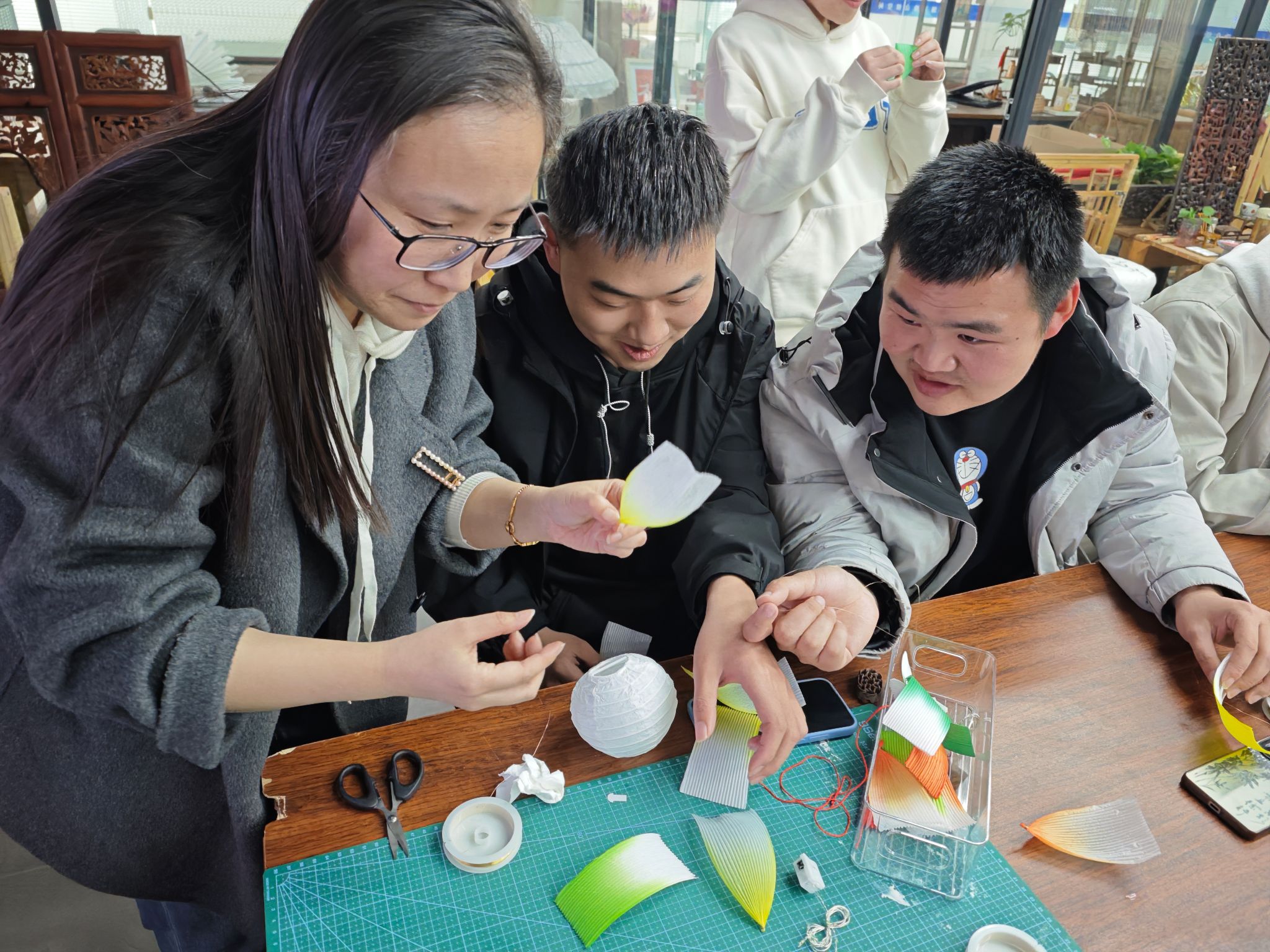 杨桦老师指导学生制作灯笼