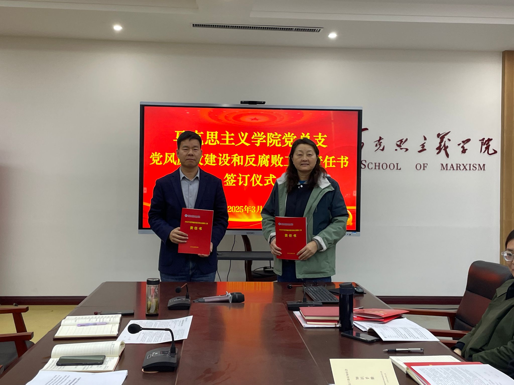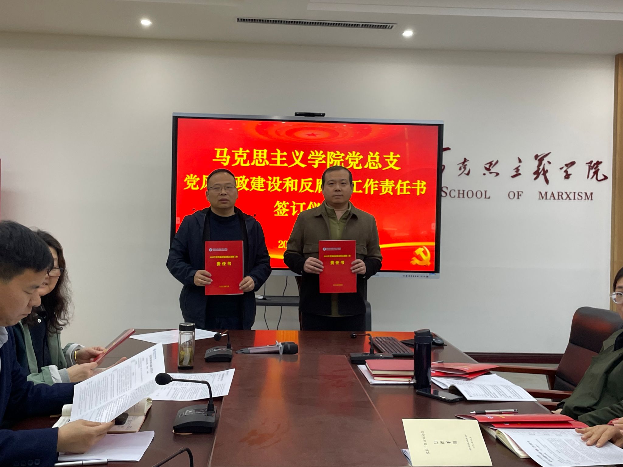 会后,马克思主义学院党总支书记杜丙辰、院长焦红强分别与副院长、科级干部和教研室主任签订了《马克思主义学院党风廉政建设和反腐败工作责任书》。