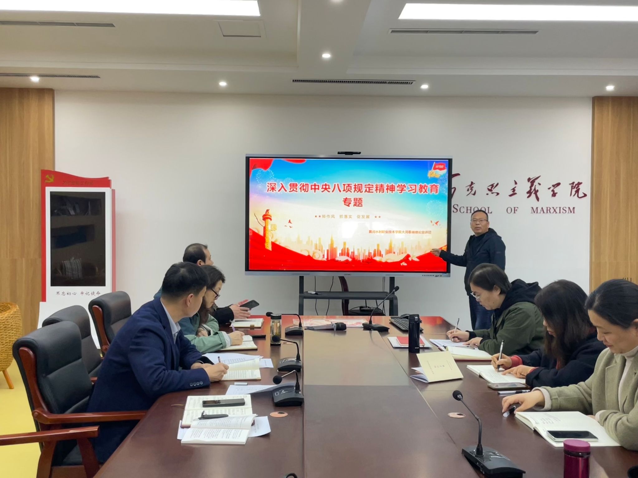 4月1日下午,马克思主义学院党总支召开全面从严治党暨深入贯彻中央八项规定精神学习教育推进会,会议由马克思主义学院党总支书记杜丙辰主持,学院全体党员参加会议。