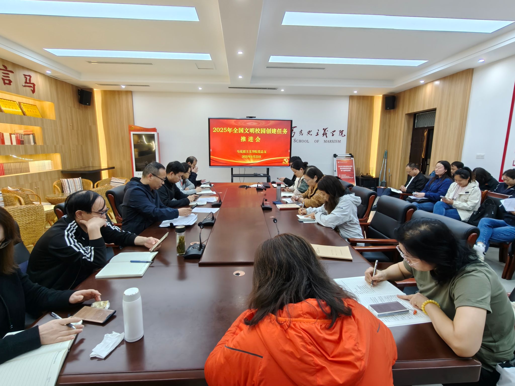 会议传达了习近平总书记对网络安全和信息化工作的重要指示精神,引导全校师生自觉学习网络安全知识,提升网络安全意识和防护技能,切实维护好校园网络安全。会议认真学习了《黄河水利职业技术大学2025年度全国文明校园建设工作方案》,并结合马克思主义学院实际和工作任务,强调以评促建、以评促改、以评促管、评建结合、重在建设,不断提高文明校园创建水平,引导每一位师生成为文明的践行者、传播者、守护者,以实际行动助力我校持续深化精神文明建设。