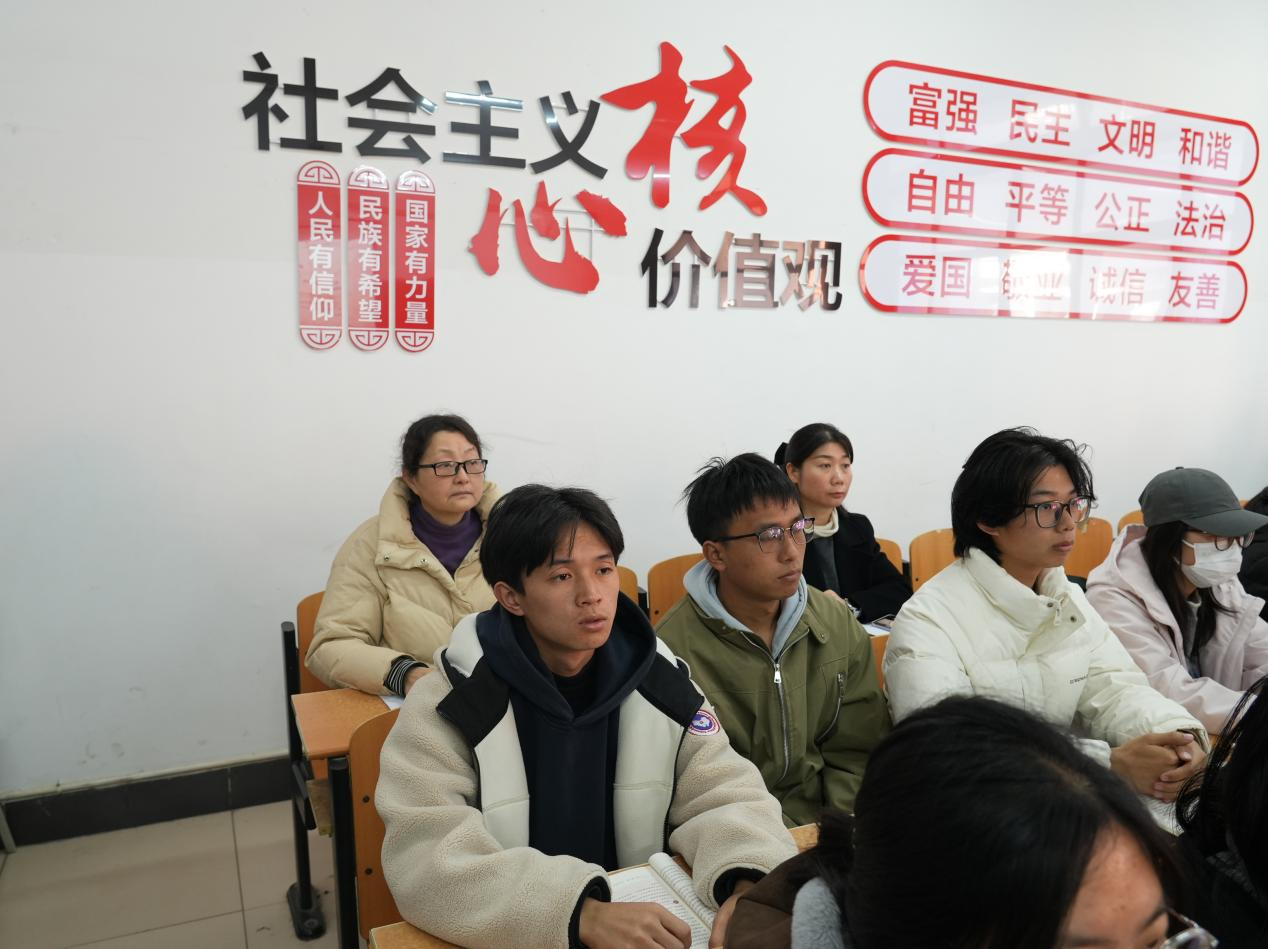 按照中共河南省委教育工委办公室 河南省教育厅办公室《关于开展2025年度全省高校秋季学期思政课“大听课 大调研”活动的通知》要求,11月19日上午,第六调研组专家河南理工大学马院党委书记洪振涛、河南科技学院马院院长王冰蔚、信阳农林学院马院党总支书记王晓明、河南应用技术职业学院马院院长张振华到我校开展思政课听课调研工作。马克思主义学院领导班子成员参与听课调研。