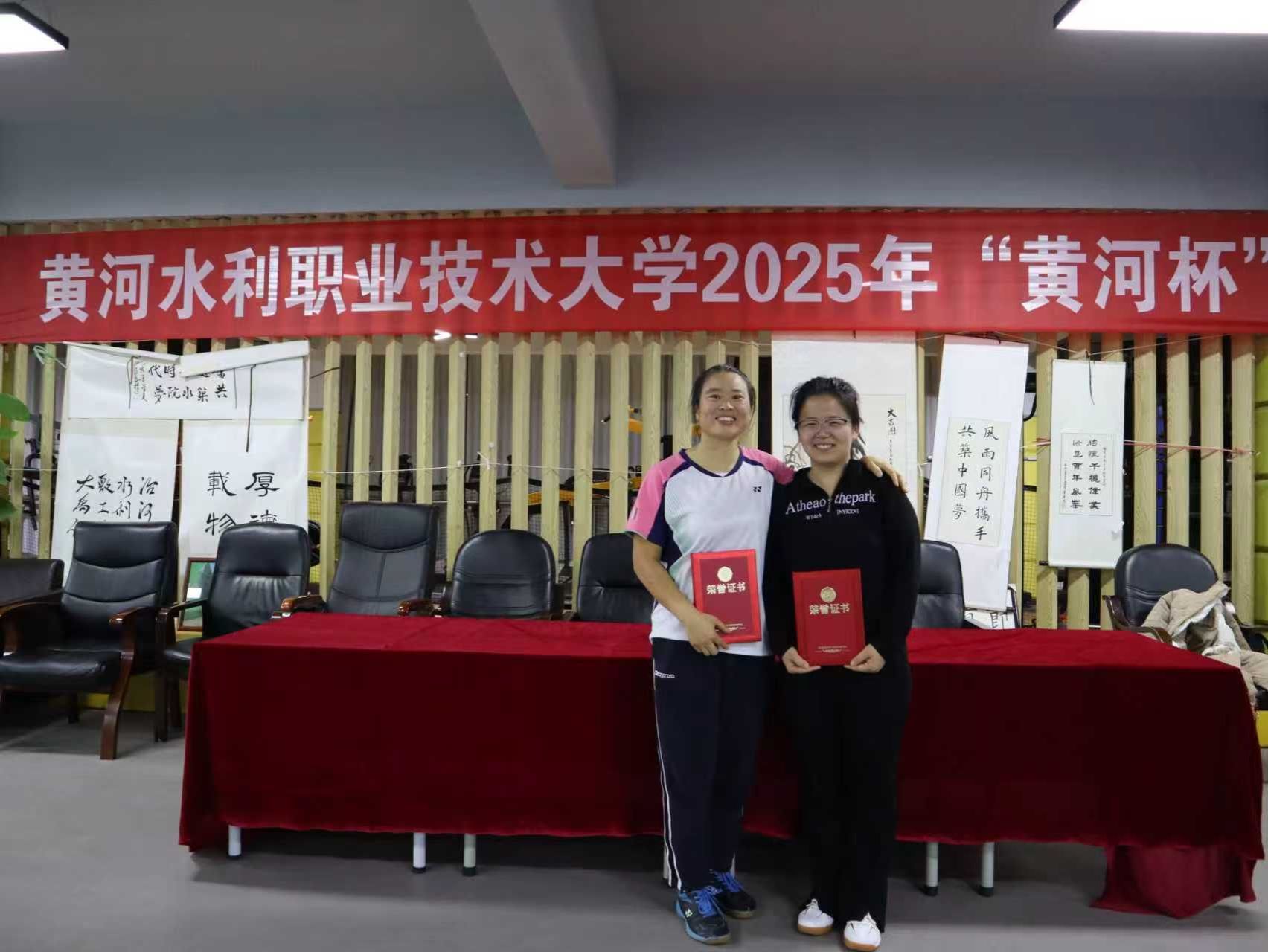 在刚刚结束的黄河水利职业技术大学2025年“黄河杯”教职工乒乓球比赛中,马克思主义学院代表队再获佳绩,团体赛项入围8强,女子单打赛项上赵竟、王超分获冠军、亚军。