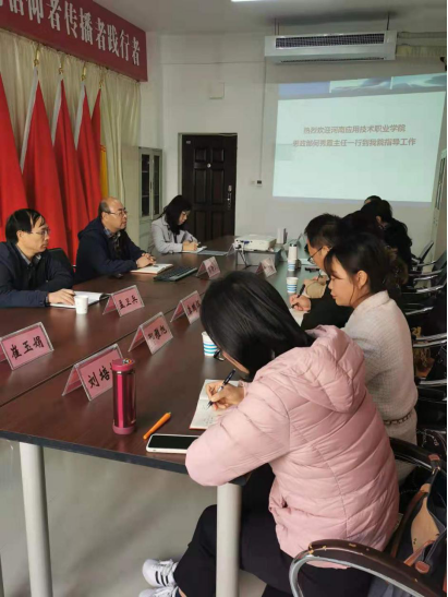 2020年11月12日上午,河南应用技术职业学院思想政治理论教学部主任何秀霞、副主任李兰英一行来马克思主义学院考察交流。马克思主义学院直属党支部书记、院长彭新立、办公室主任乔新杰等人与来访客人在学院会议室进行了座谈交流。