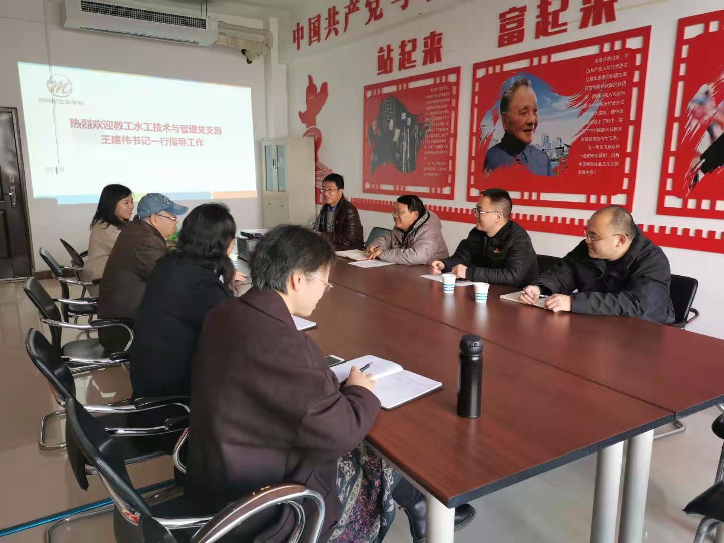 2021年3月3日,教工水工技术与管理党支部王建伟书记一行来我院直属党支部进行考察。马克思主义学院直属党支部书记、院长彭新立等人与来访客人进行了深入交流。