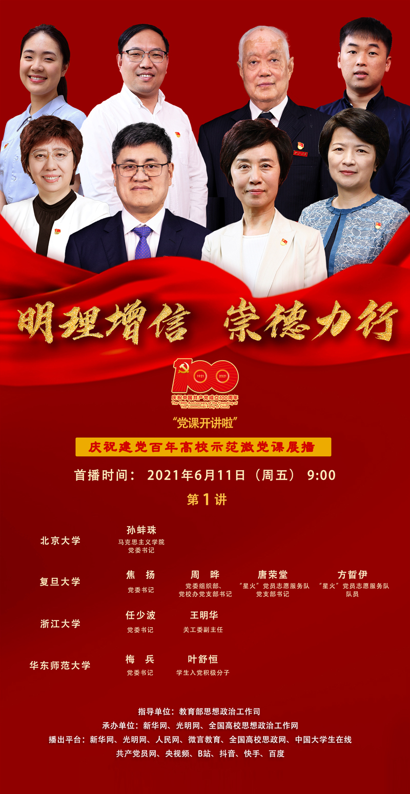 本次微党课以“红色校史中的第一”为主题,北京大学生动讲述高校第一个党的早期组织在北京大学的发端发展历程、高校师生的思想理论活动、同工农民众相结合的革命实践以及对青年学子的现实启示,复旦大学会同“星火”党员志愿服务队的师生,以“追望大道 明理笃信”为主题,以陈望道首译《共产党宣言》为主线,讲述了“宣言中译 建党伟业”、“南陈北李 选择望道”、“催生伟业 与党同行”、“真理光芒 薪火相传”等党史故事,浙江大学邀请尽美后人王明华教授分享了王尽美参与建党工作的史实及其家族四代人红色传承的故事,华东师范大学以“《资本论》首个中文全译本的诞生历程”为主题,分享了校友郭大力翻译《资本论》、终生追求马克思主义真理的感人故事。